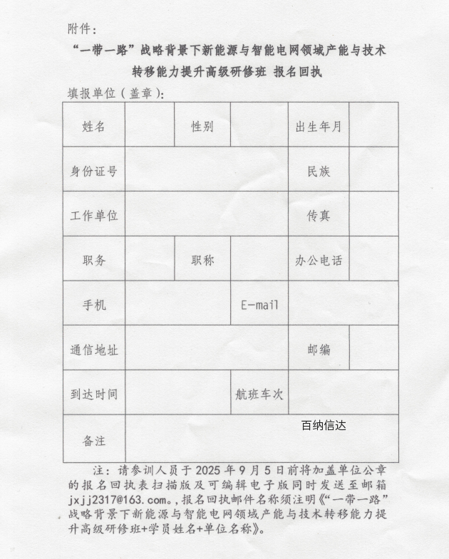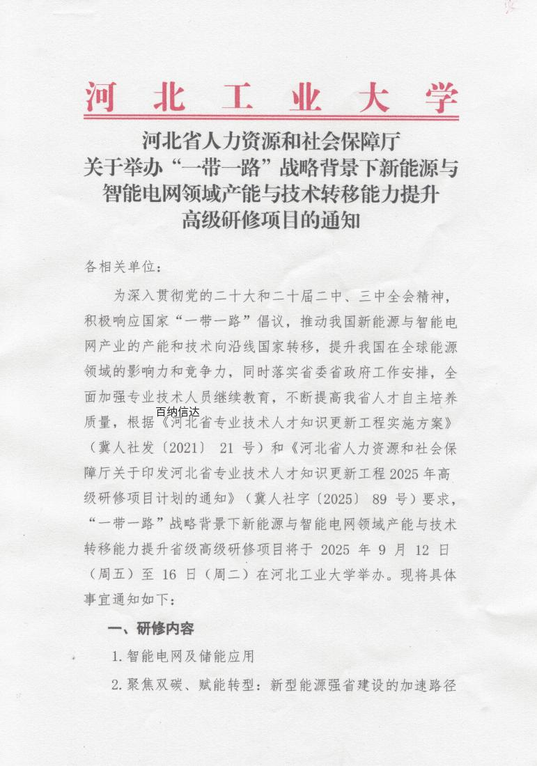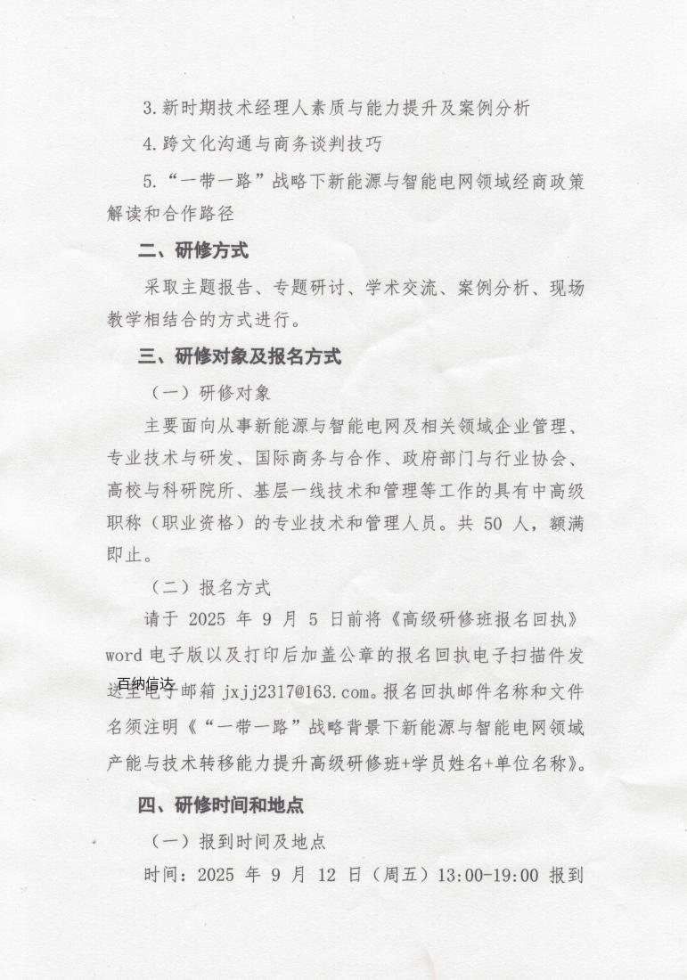 关于举办“一带一路”战略背景下新能源与智能电网领域产能与技术转移能力提升高级研修项目的通知